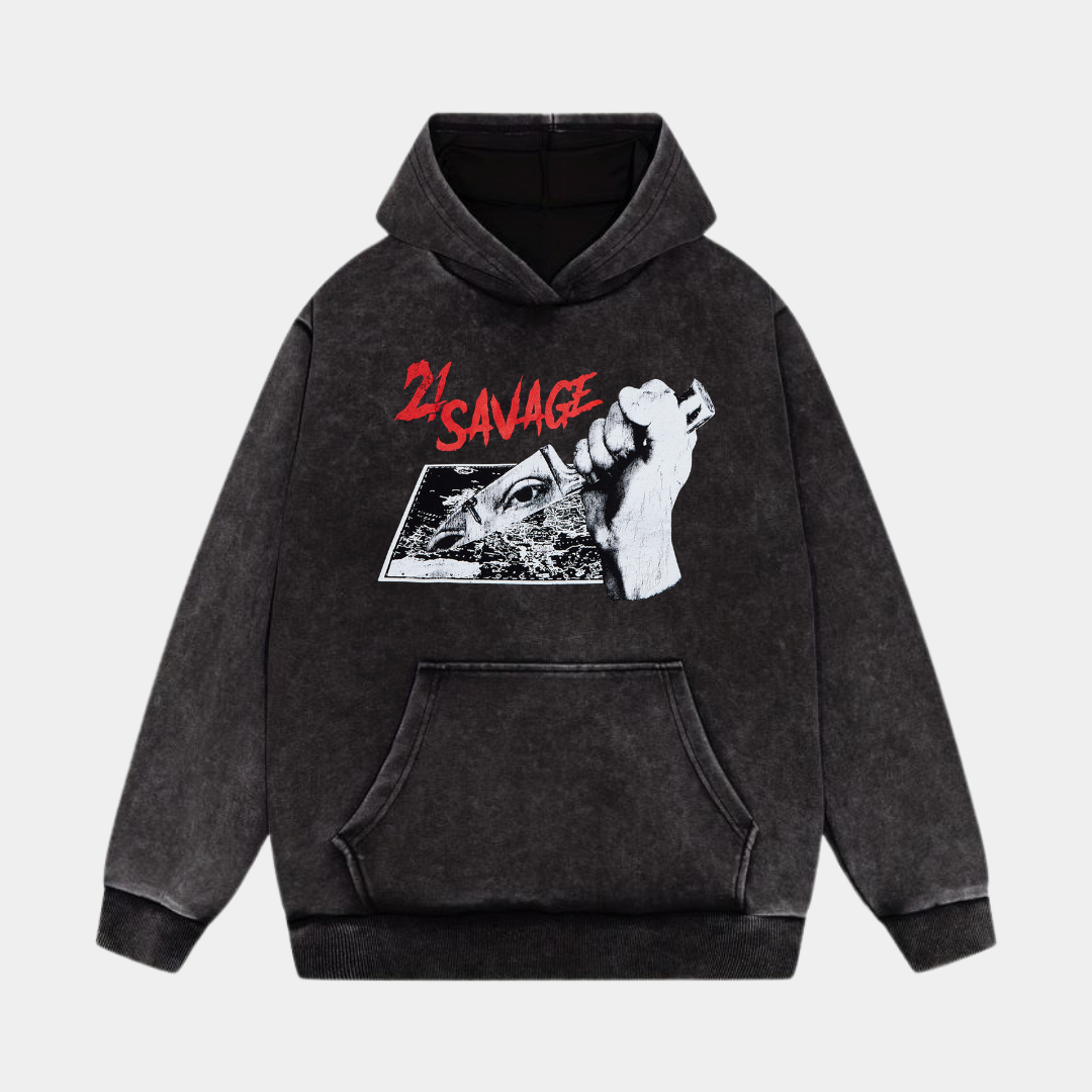 21 SAVAGE ACID WASH OVERSIZED HOODIE